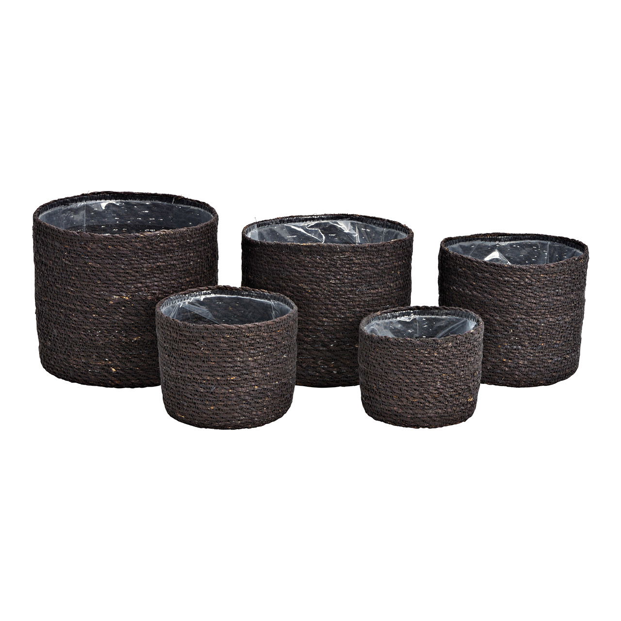 Flower pot set of 5 made of seagrass lined with foil, black set, (W/H) 20x18cm 18x16cm 16x14cm 14x12cm 12x10cm