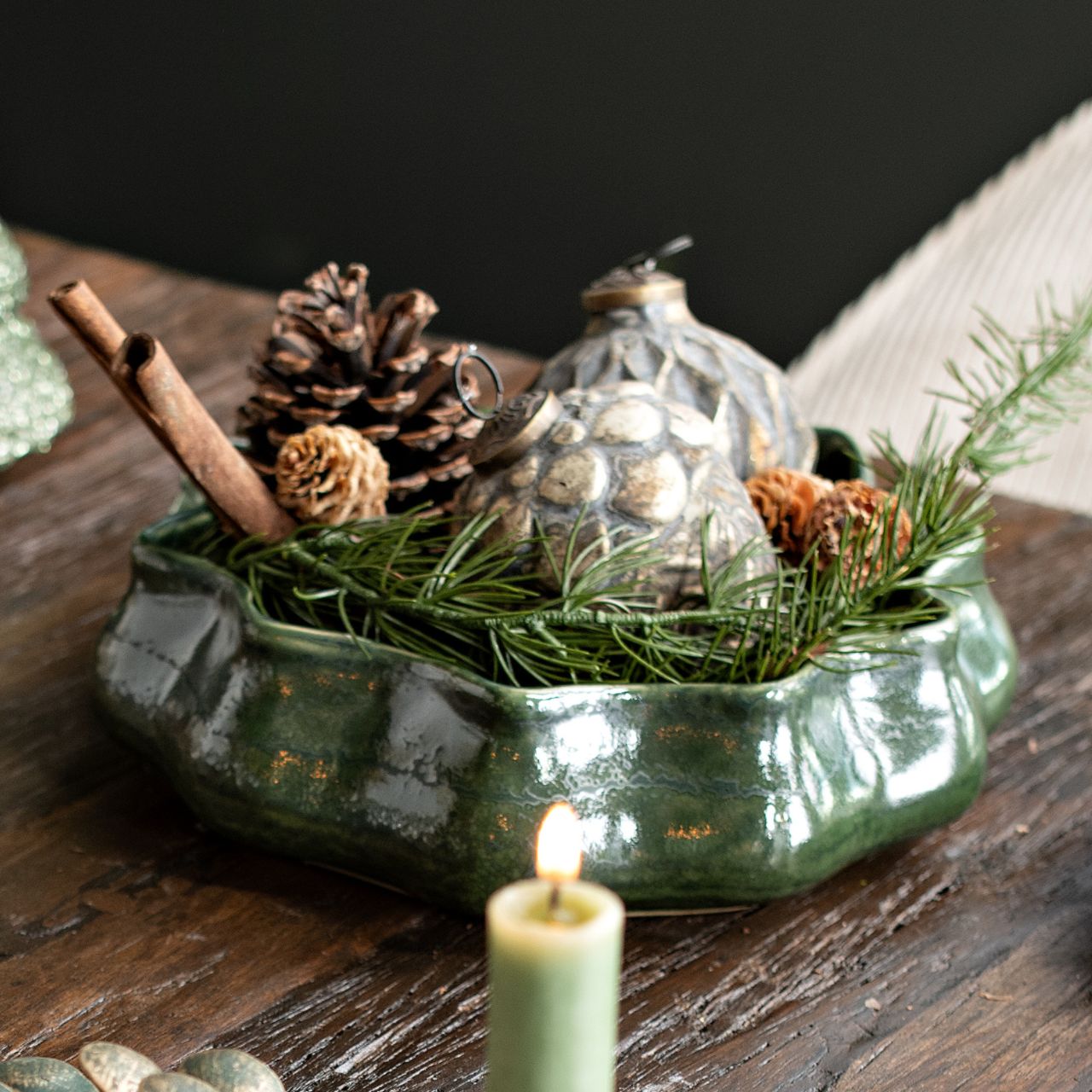 Article number: 10040300 Candy tin made of ceramic red, green 2-fold, (W/H/D) 16x8x7cm