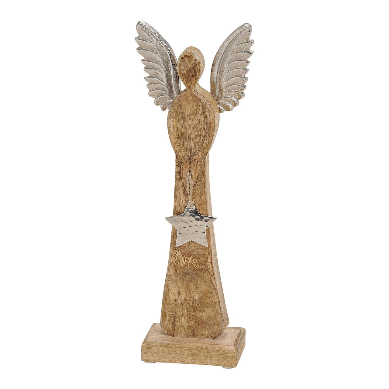 Engel aus Mango Holz mit Metall Flügeln Stern Anhänger Braun, silber (B/H/T) 12x34x6cm