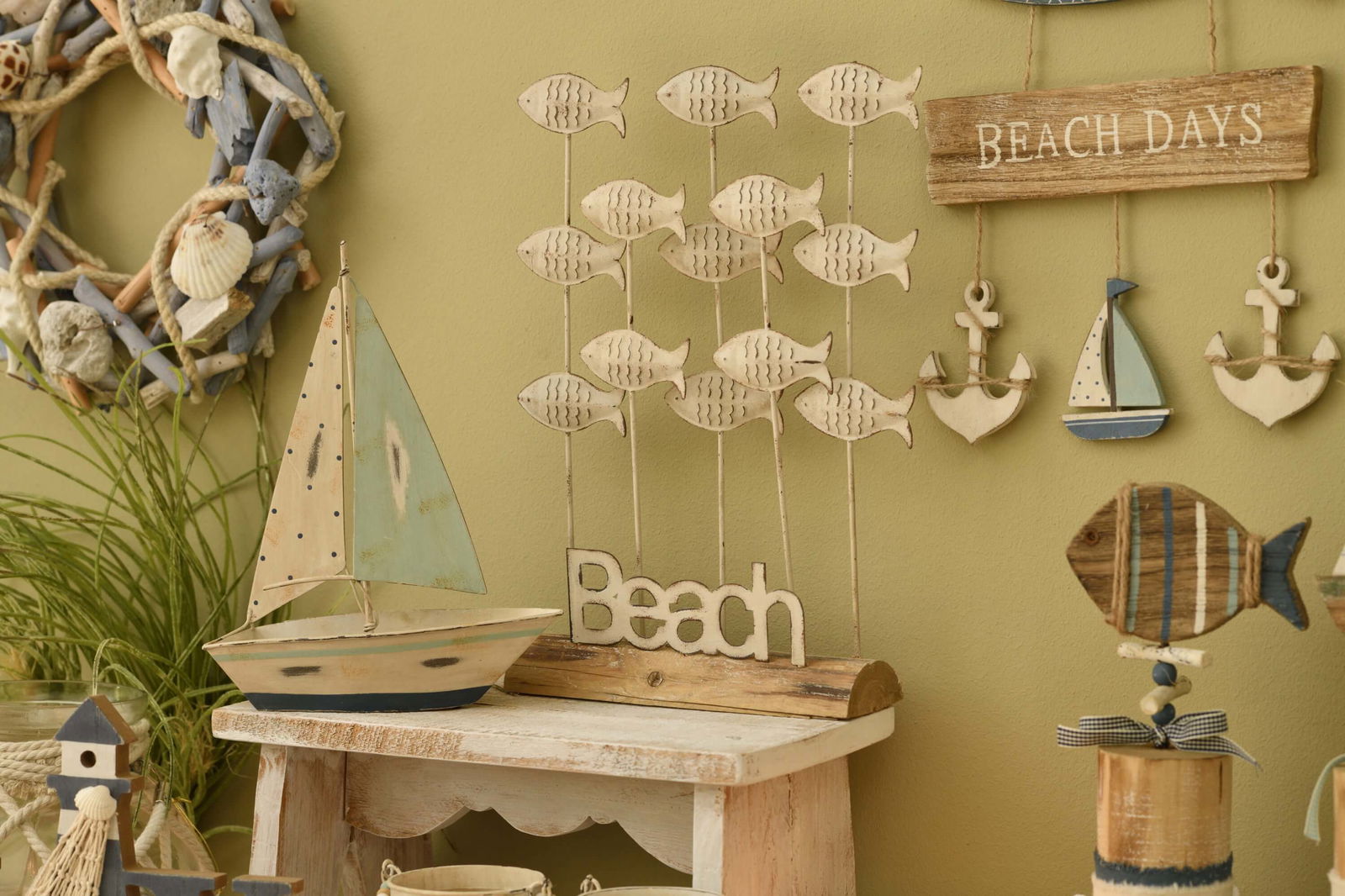 Número de producto: 10032290  Motivo marítimo sobre base de madera de metal Beige 4 pliegues, (A/A/P) 18x15x5cm