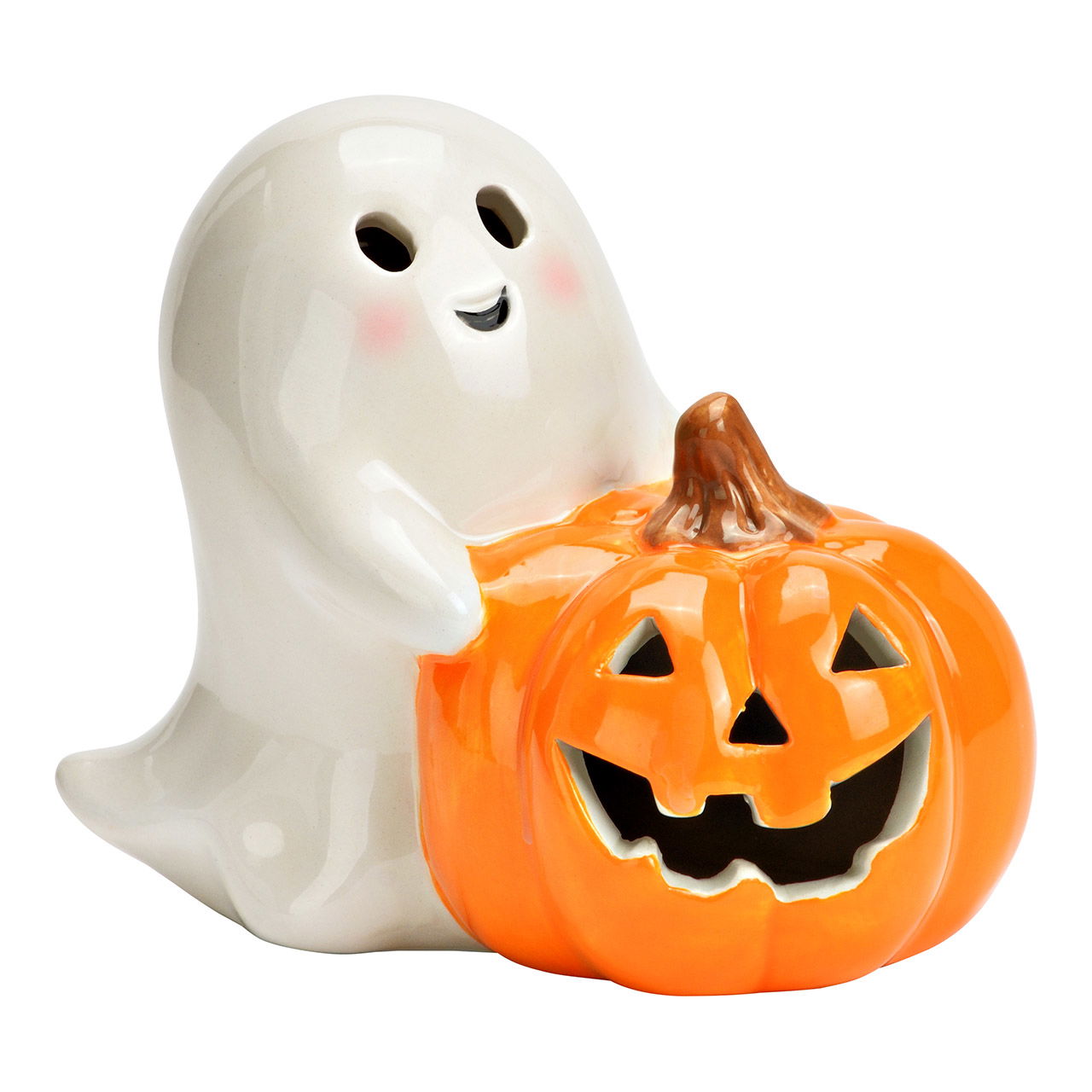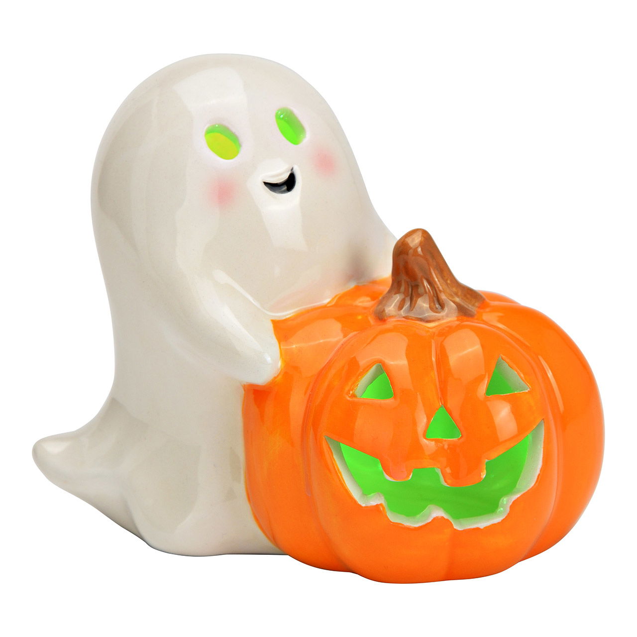 Esprit, citrouille avec LED multicolore lumineuse en céramique, blanc/orange (L/H/P) 12x10x7cm Fonctionnement sur piles 2xLR44 non incluses