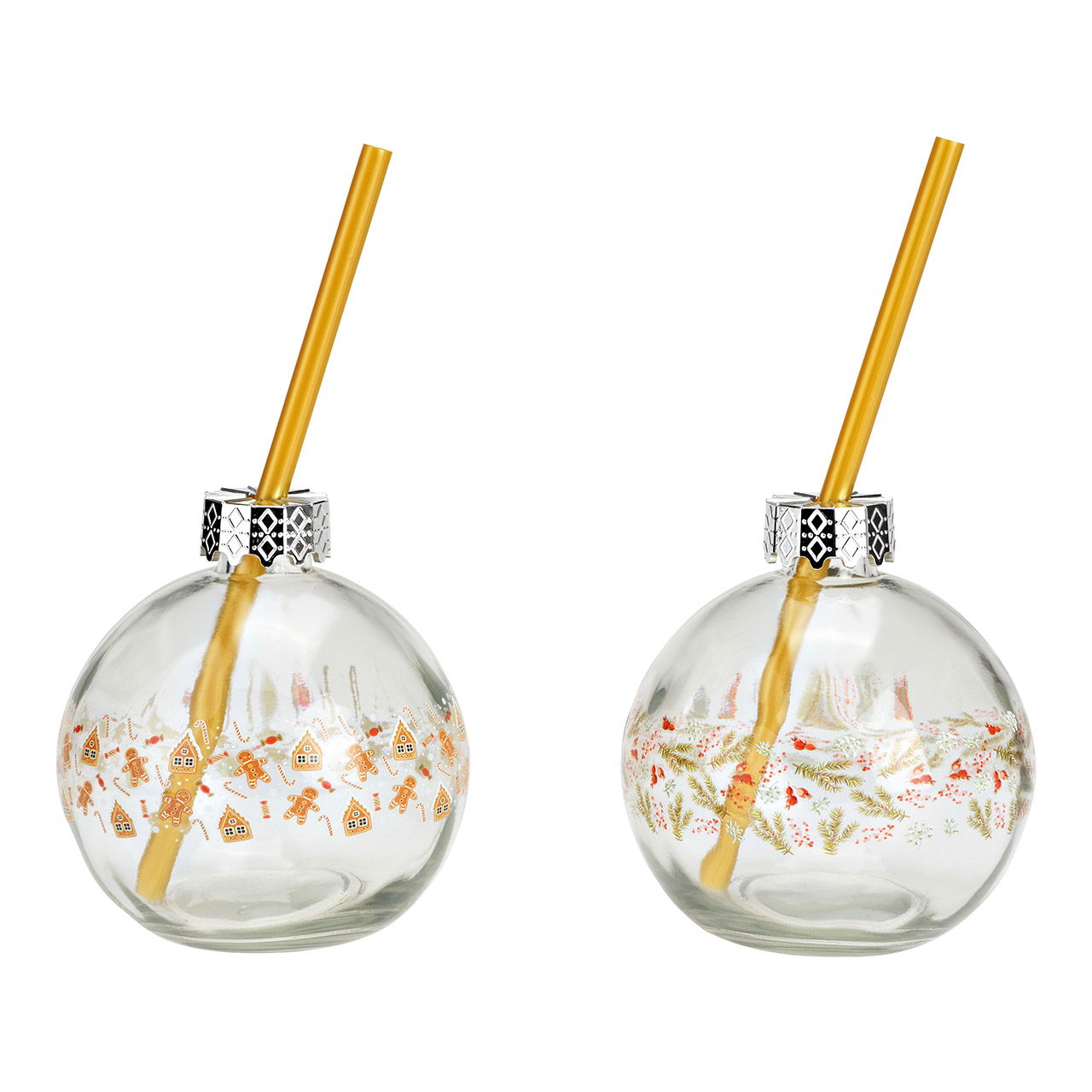 Art. Nr.: 10036422 Trinkglas Weihnachtskugel mit Motiv und Strohhalm, 2-fach, 220ml