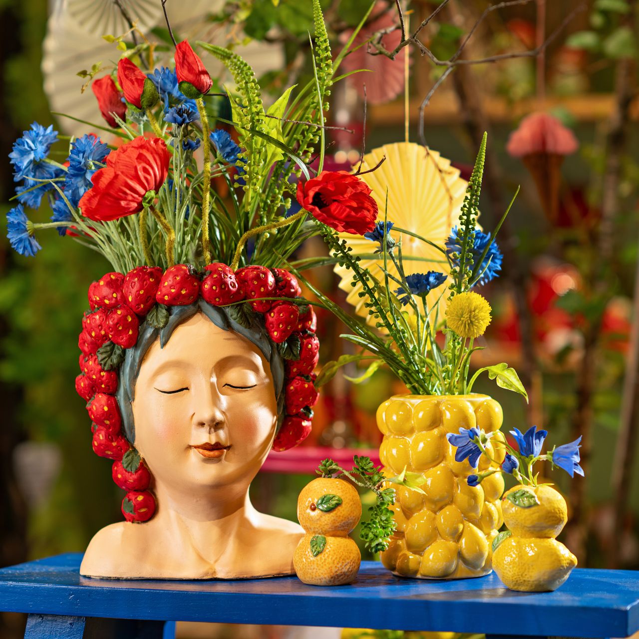 Art. Nr.: 10042319 Blumentopf Frauenkopf mit Zitronen aus Magnesia, Rosa/Gelb (B/H/T) 22x27x21cm
