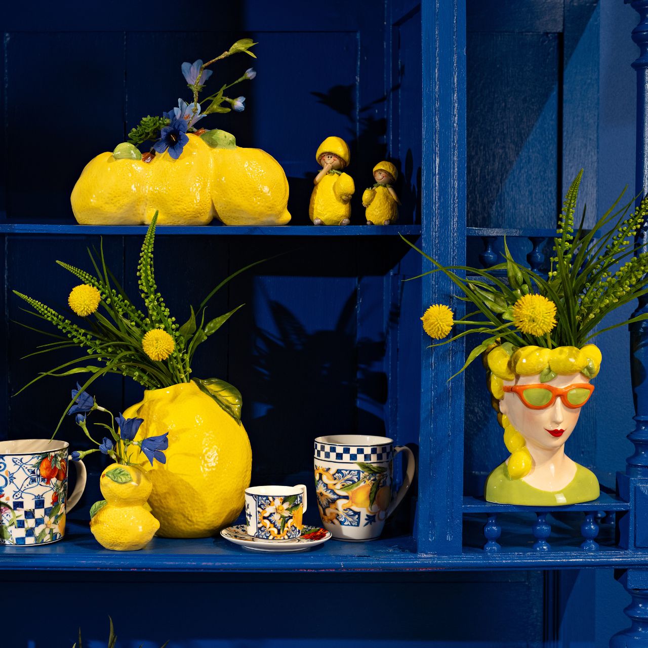 Art. Nr.: 10042974 Becher Zitrone Dekor aus Porzellan, Weiß/Blau/Gelb (B/H/T) 12x10x8cm 350ml