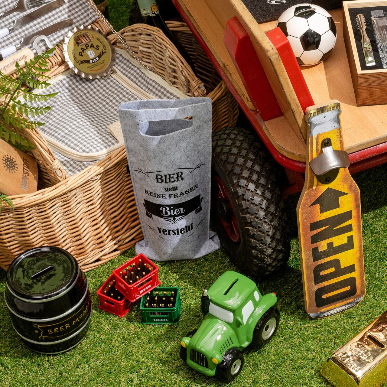 Codice prodotto: 10032599 Portabirra in feltro con slogan in feltro grigio a 4 pieghe, (L/H/D) 24x8x1cm