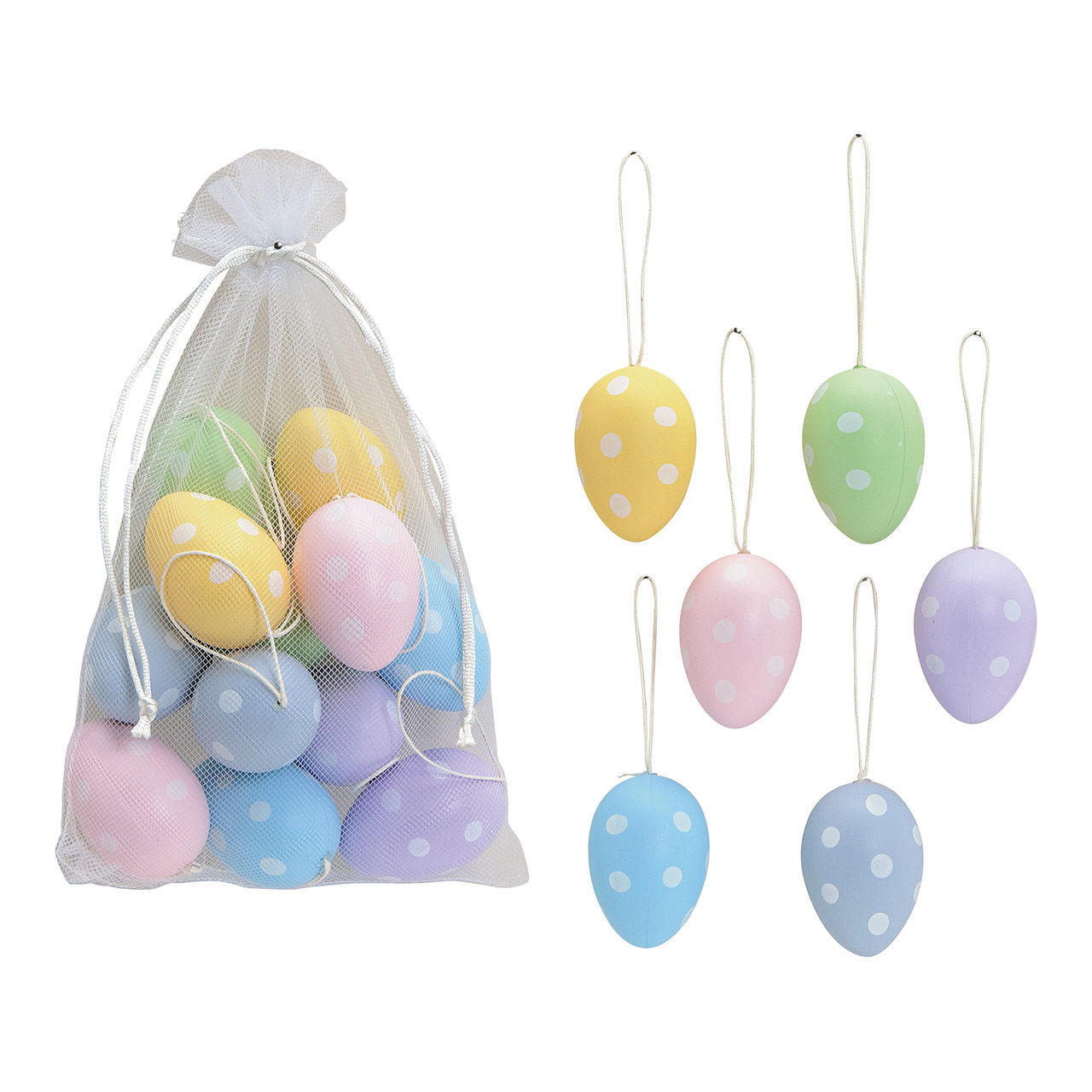 Set di uova di Pasqua da appendere (4x6x4cm) punti decorativi in plastica colorata set di 12, (L/H/D) 16x18x6cm Ø3cm