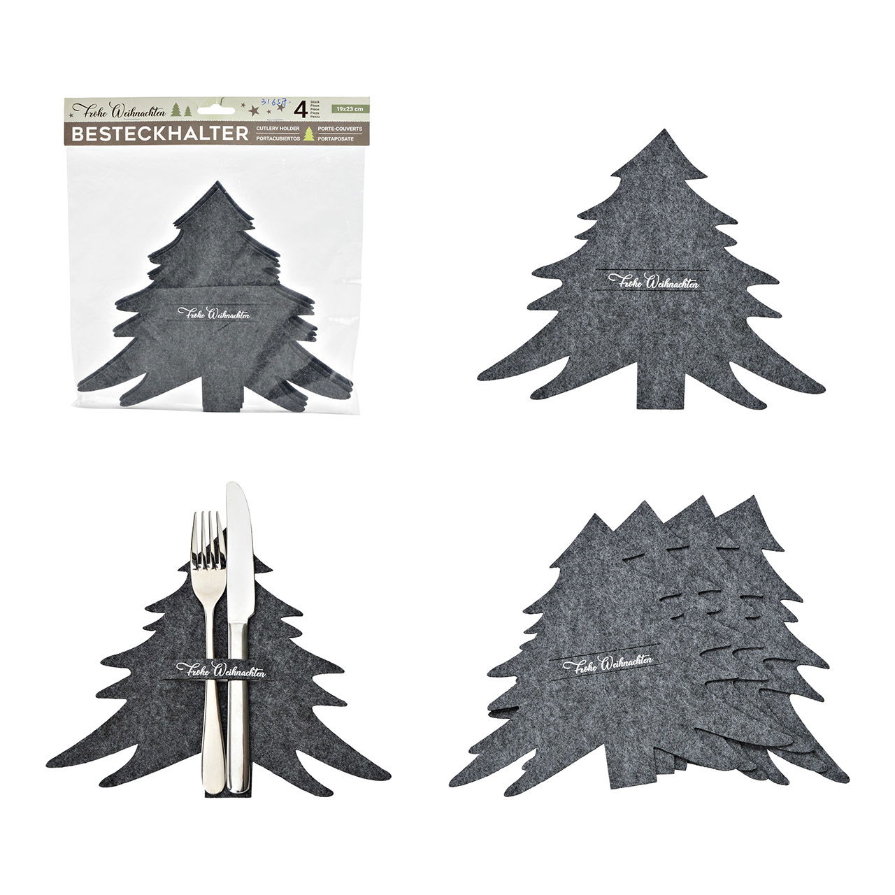 Productnummer: 10031657 "Vrolijk kerstfeest" vilten bestekhouder boom, set van 4, grijs (B/H) 19x23cm