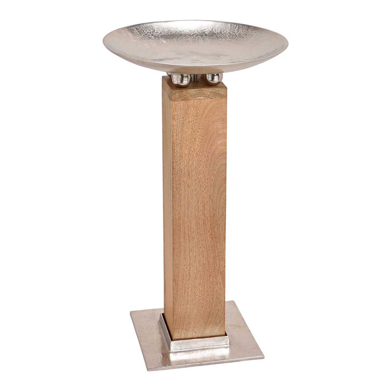 Säule aus Mangoholz mit Schale aus Metall, Braun/Silber (B/H/T) 41x75x41cm