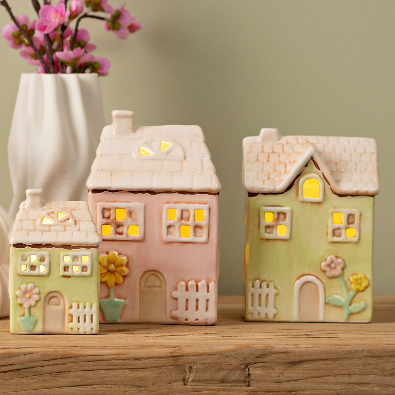 Art. Nr.: 10044919 Windlicht Blumen/Schmetterling Dekor aus Glas, 3-fach, Gelb/Rosa/Grün (B/H/T) 9x10x9cm