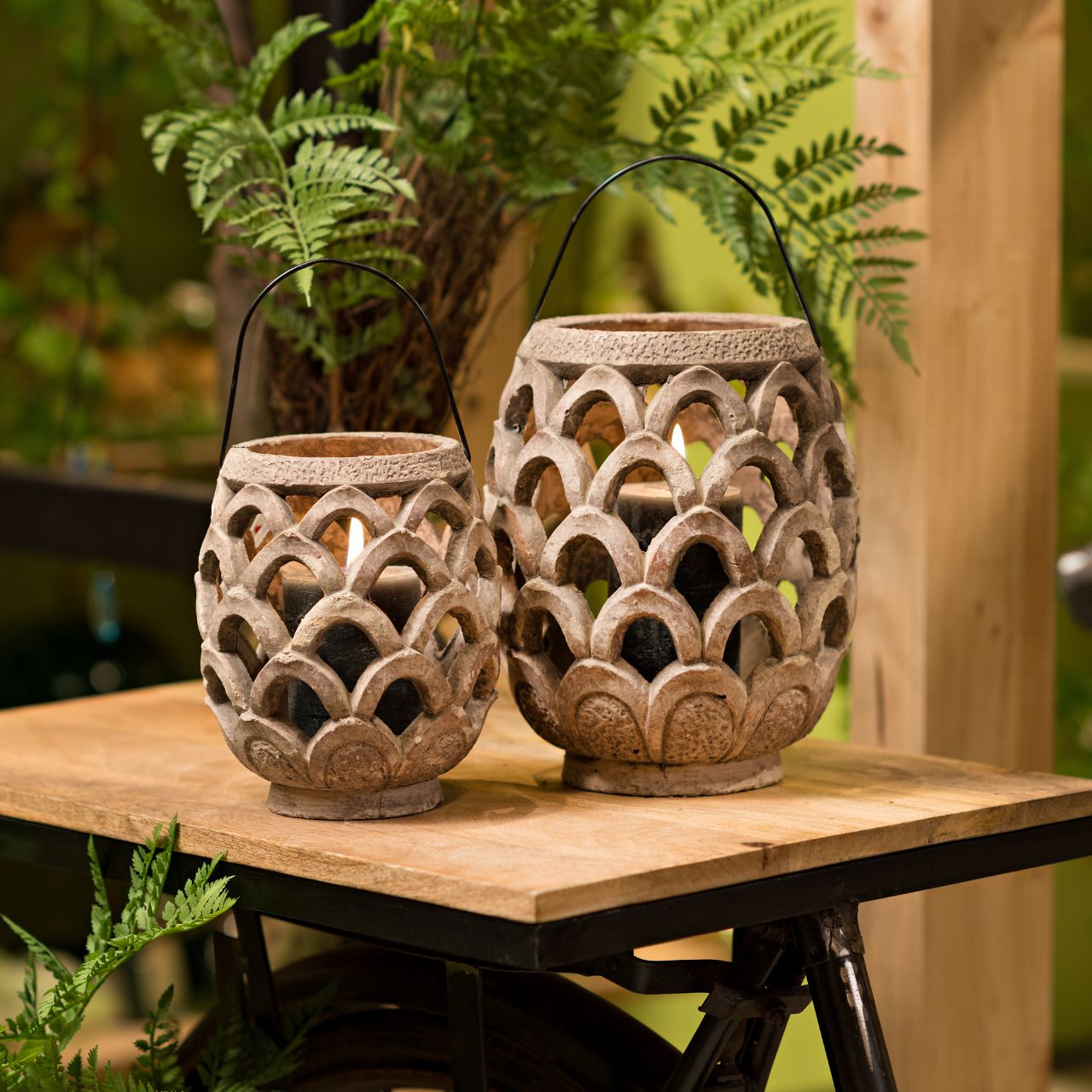 Art. Nr.: 10055928 Windlicht Blumen Dekor, aus Mangoholz, Glas Natur (B/H/T) 24x35x17cm