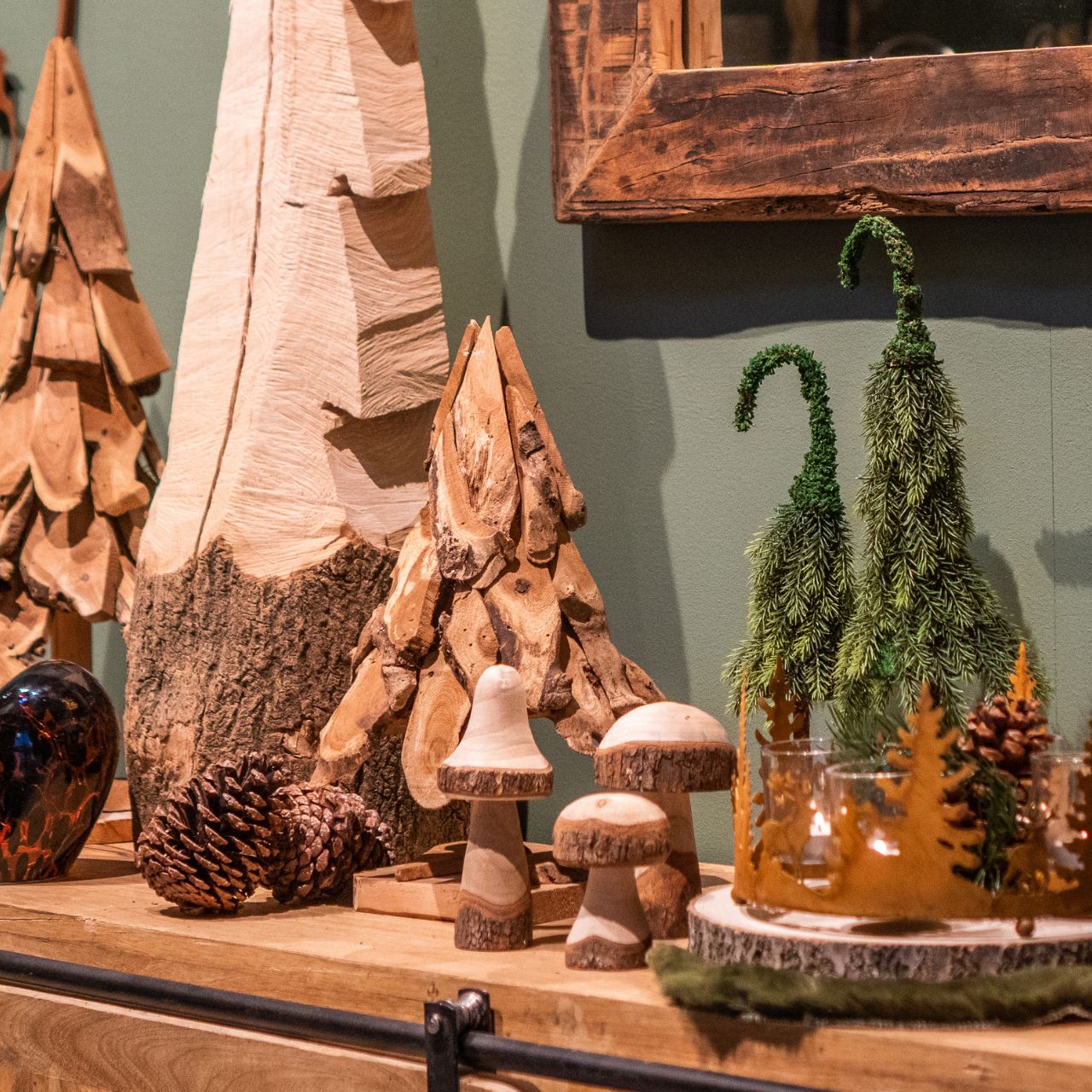 Art. Nr.: 10055974 Windlicht Herz Dekor aus Glas, Mangoholz Natur (B/H/T) 15x18x15cm