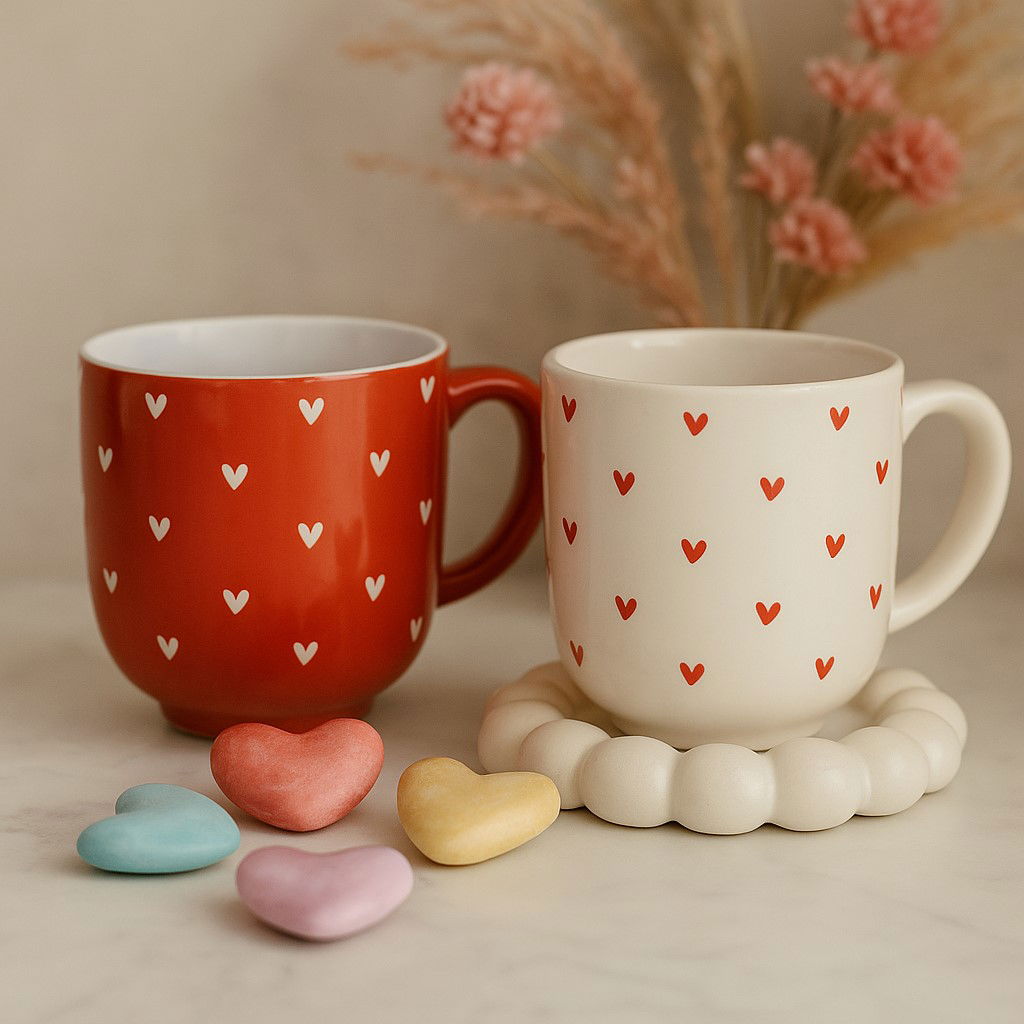 Art. Nr.: 10012660 Becher Herzdekor aus Porzellan, 3-fach sortiert (B/H/T) 12x11x8 cm, 300 ml