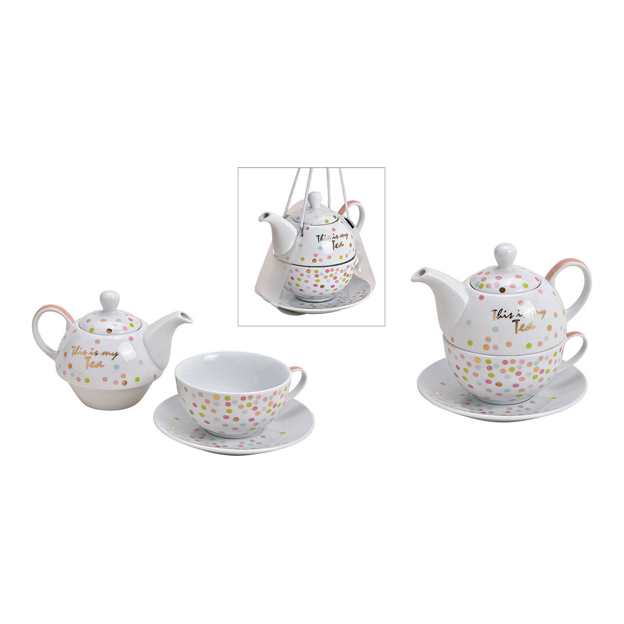 Teekannen-Set This is my tea, Punkten Dekor, aus Porzellan Weiß 3er Set, (B/H/T) 15x16x15cm 400ml, 250ml